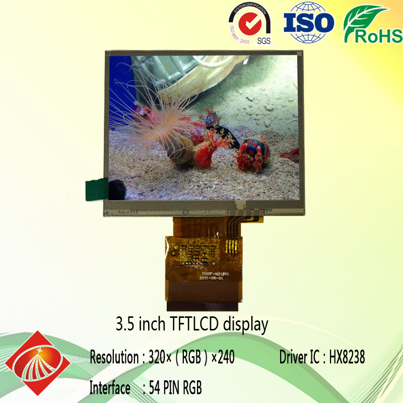 3.5寸TFT彩屏_3.5寸液晶屏_320x240分辨率_彩色TFT模塊_54pinRGB接口_驅動HX8238_3.5寸電阻觸摸屏